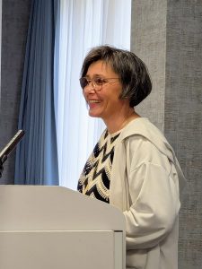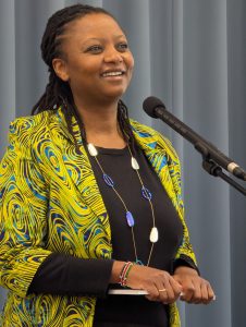 Die Psychologin Evelyne Waithira Müller, die sich selbst als empathische Überlebenskünstlerin mit großem Ja zum Leben bezeichnet, sprach über wirkungsvolle Strategien für mehr Resilienz und Lebenszufriedenheit. Ihr Vortrag war erfrischend und durch eigene Erfahrungen als Migrantin sehr authentisch und regte an den Tischen zu lebendigen und offenen Gesprächen an.